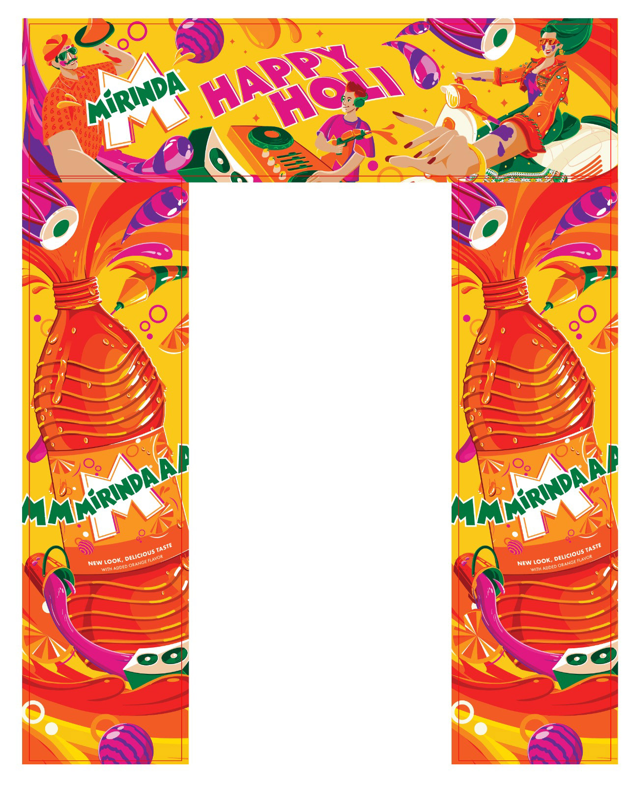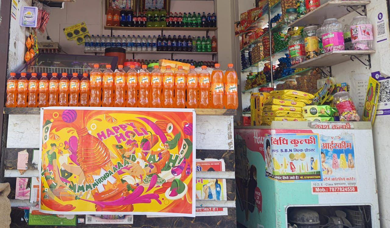 A vivid palette of oranges, pinks, and purples brought the Holi mood alive — with scooters zipping by, dhol beats in the air, and drenched smiles all flowing from the central burst. More than just visual storytelling, it positioned Mirinda as the very reason Holi feels so alive.